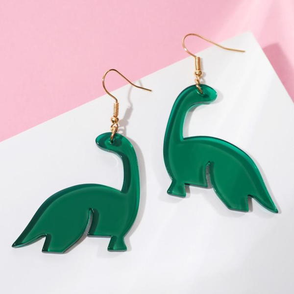 • Серьги из акрила "Динозаврик" мультяшный, цвет зелёный