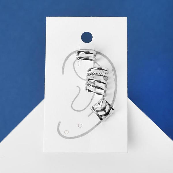 Клипсы для ушей QF «Тренд» кольцо жгутик, цвет серебро