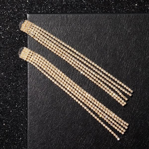 Серьги висячие со стразами "Водопад" прямые нити, цвет белый, цвет золотистый