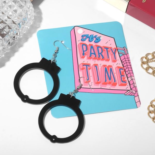 Серьги акрил "Наручники", цвет чёрный, цвет серебристый