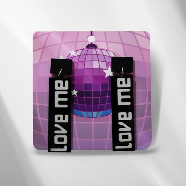Серьги акрил LOVE ME прямоугольные, цвет чёрно-белый
