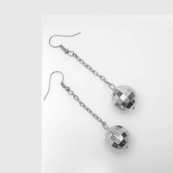 • Серьги висячие "Диско-шар", цвет серебро