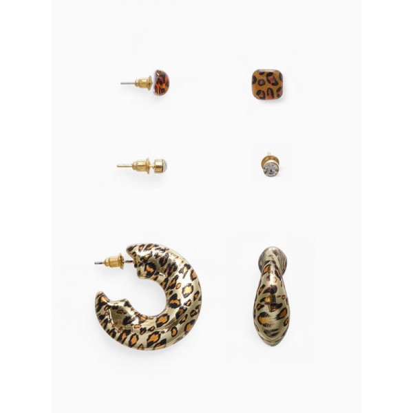 Серьги QF «Леопард», набор 3 пары, кольца, цветной, цвет золотистый