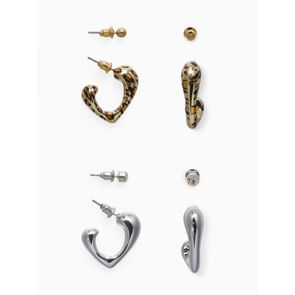 • Серьги QF «Сердце леопарда», набор 4 пары, бусины, цвет золото, серебро