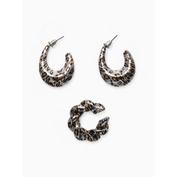 Серьги и каффы QF «Леопард», набор, жгутик, цвет серебро