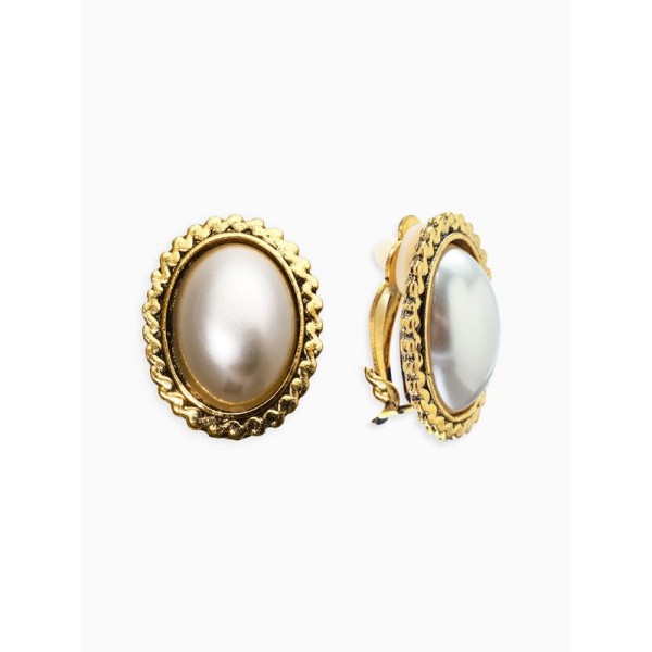 Клипсы "Винтаж" овал жемчуга, цвет белый, цвет золотистый