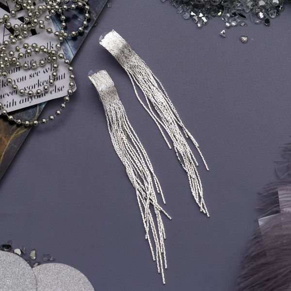 Серьги висячие "Голливуд" блеск нитей, цвет серебро (Бижутерный сплав)