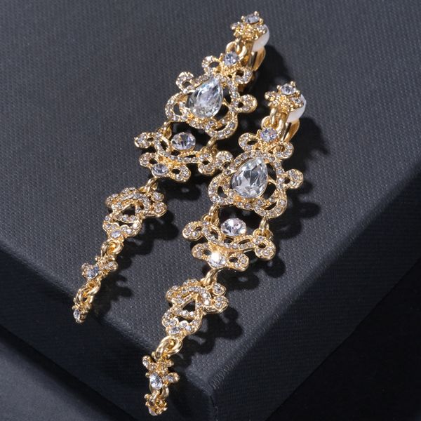 Клипсы "Ажур" капли с завитками, цвет белый, цвет золотистый (стразы, бижутерный сплав)