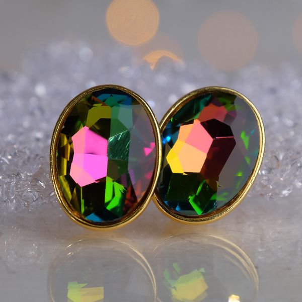 • Клипсы "Вечеринка" овалы, цвет бензиновый, цвет золотистый (стекло, бижутерный сплав)