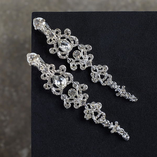 Клипсы "Ажур" капли с завитками, цвет белый, цвет серебристый