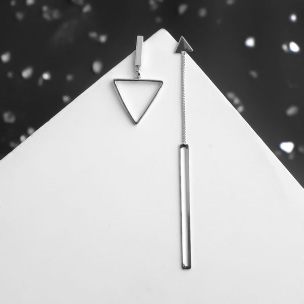 Серьги металл "Геометрия" треугольники, цвет серебро
