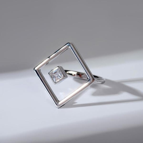 Кольцо "Квадрат" страза в серединке, цвет белый, цвет серебристый, безразмерное