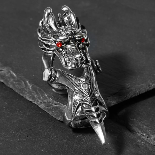 Кольцо "Коготь" дракон с красными глазами, цвет красный, цвет серебристый