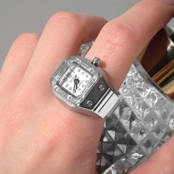 Кольцо "Время" часы квадрат, цвет серебро