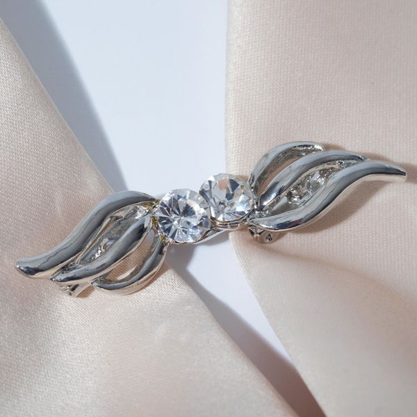 Кольцо для платка "павлин", стразы, цвет белый+серебристый