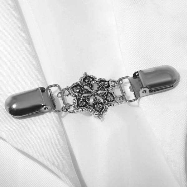 Зажим для кардигана "Цветение", цвет чернёное серебро