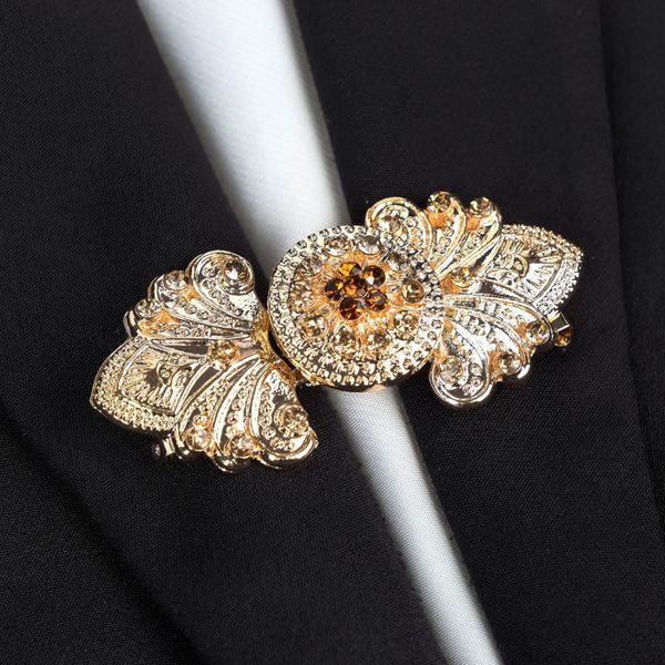 Зажим для платка "роза", стразы, цвет белый+зол..