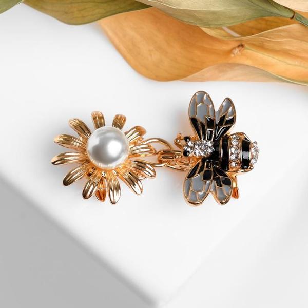 Зажим для кардигана "Пчела", цвет чёрно-белый, цвет золотистый