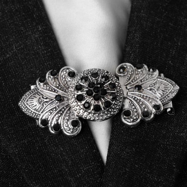 Зажим для кардигана "Завитки", цвет чёрный, цвет серебристый