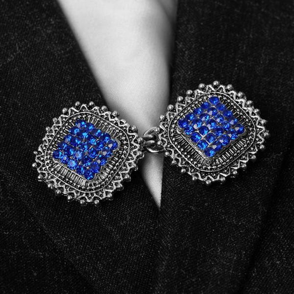 Зажим для кардигана "Квадраты", цвет синий, цвет серебристый