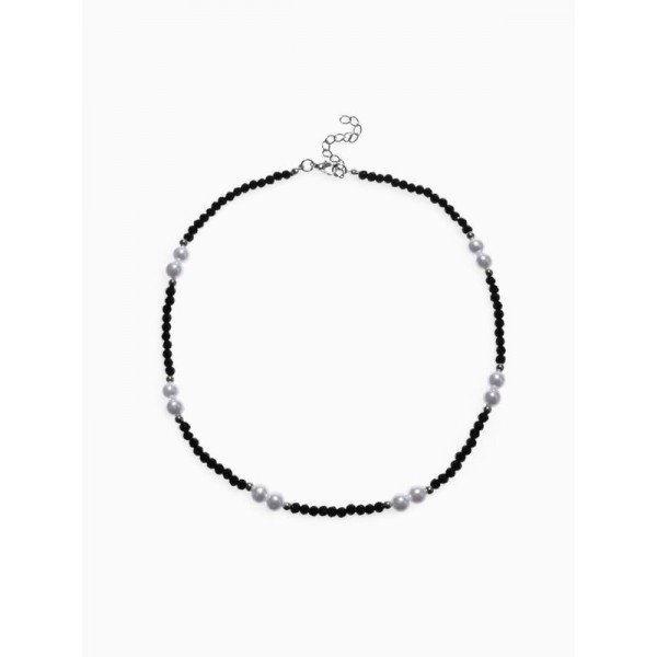Бусы «Бисер» бусина №8, чёрно-белый, цвет серебристый, 40 см