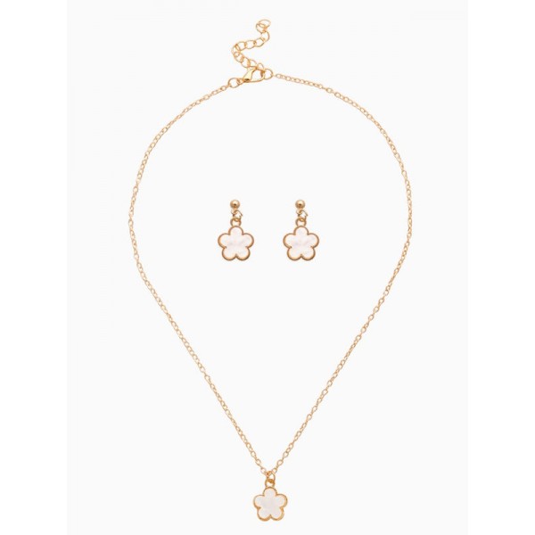 Комплект: серьги, кулон «Цветочки», 44 см, белый, цвет золотистый