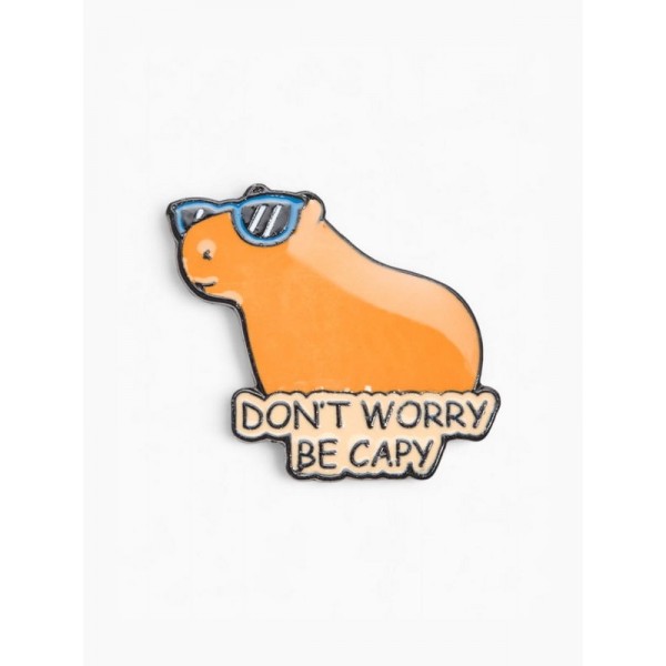 Значок «Капибара не волнуйся», оранжевый в чёрном металле