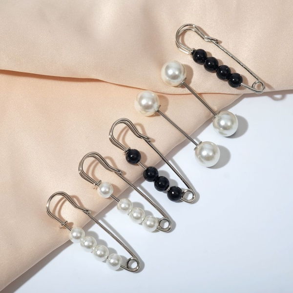 Набор булавок (6шт) "Жемчужины", цвет чёрно-белый, цвет серебристый