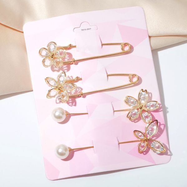 • Набор булавок (4шт) "Цветы", цвет белый, цвет золотистый