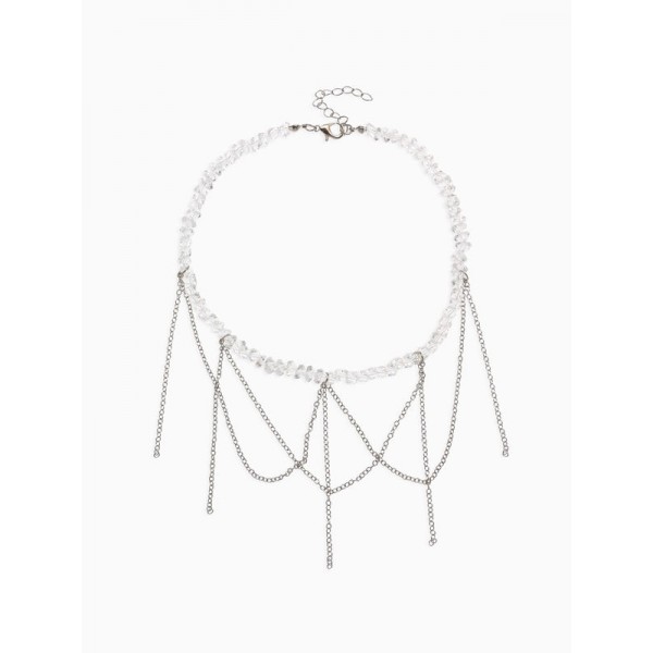 • Колье «Дуга» водопад, белое, цвет серебристый