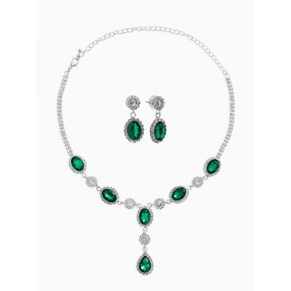 Комплект: серьги, колье «Вечерний шик. Овал», цвет бело-изумрудный, цвет серебристый
