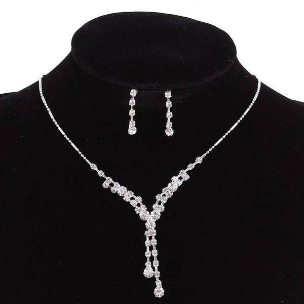 Комплект; серьги, колье "Легкий флирт" дождик, белый, цвет серебристый (стразы, бижутерный сплав)