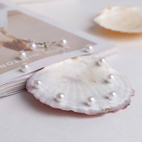 • Бусы на леске жемчуг, шар №8 цвет белый, цвет серебристый, 30см (пластик, бижутерный сплав)