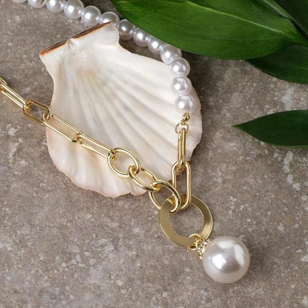 Колье жемчуг "Цепь" дабл, цвет белый, цвет серебристый