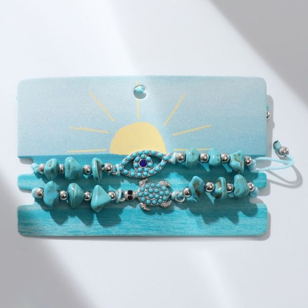 • Браслеты-обереги «Нить желаний» набор 2 шт., камни, цвет голубой