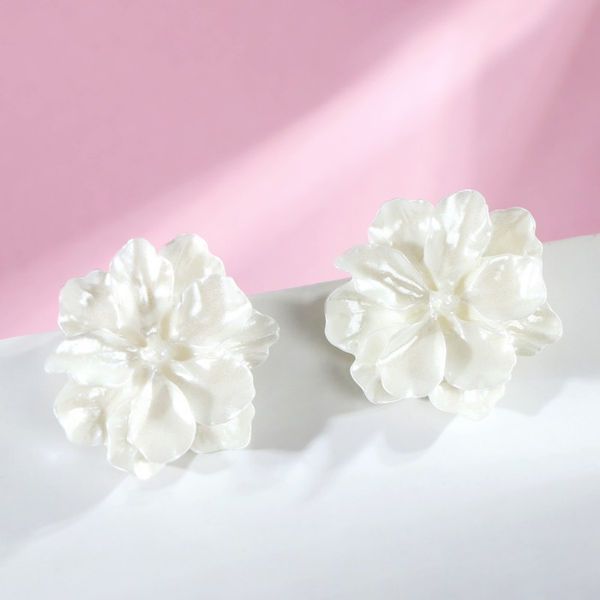 • Серьги пластик "Распустившийся бутон" сияние, цвет белый