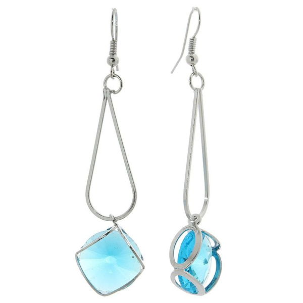 • Серьги висячие со стразами "Капля с ромбом", цвет голубой, цвет серебристый