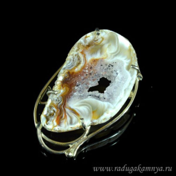 Брошь с жеодами агата бразильского 48*28мм.