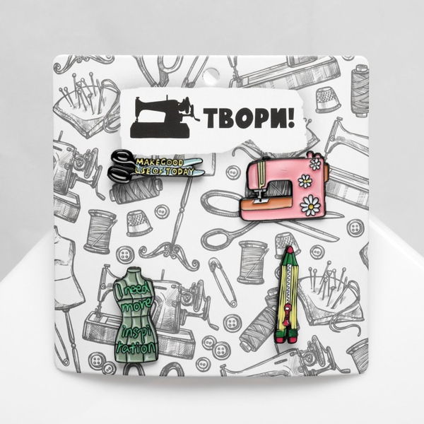• Набор значков (4шт) "Швея", цветной в чёрном металле
