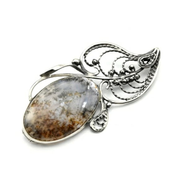 • Брошь агат моховой 65*34мм.