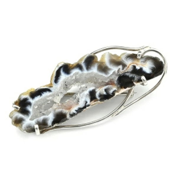 Брошь с жеодами агата бразильского 52*21мм.
