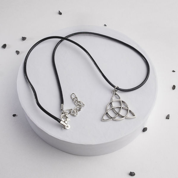 Кулон на шнурке "Трилистник", цвет чернёное серебро на чёрном шнурке, 42 см
