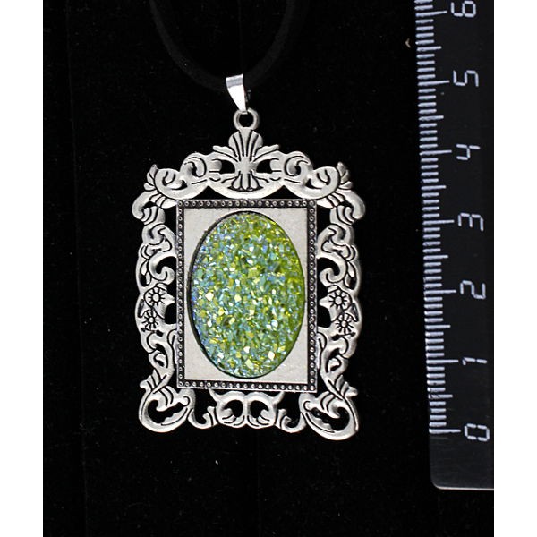 Кулон c кабошоном из пластика "щетка кристаллов", цвет салатовый, "портрет", овал 25х18мм