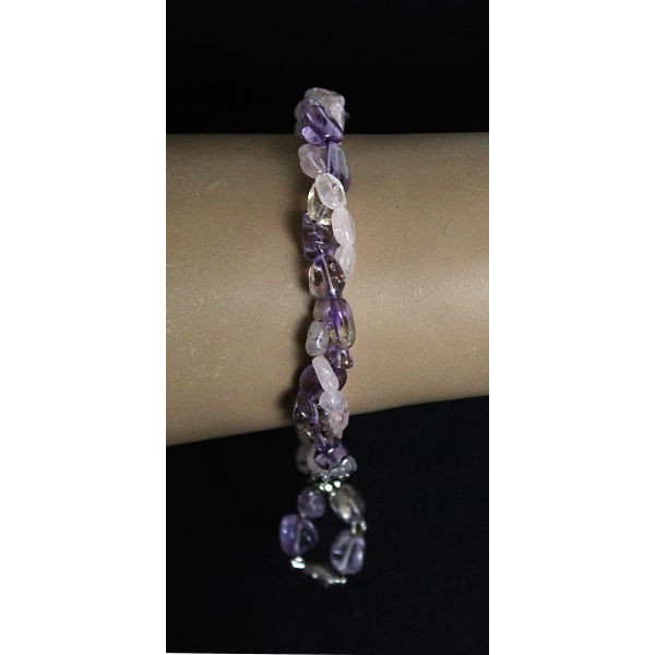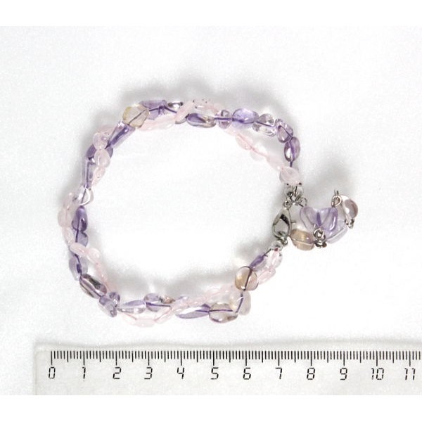 Браслет из кварца розового и аметрина, овалы, жгут 2 нити