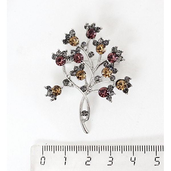 Брошь "ветка терновника", цвет розовый+ серебристый
