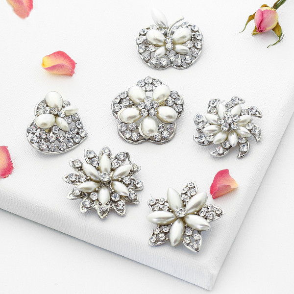 Брошь "Ассорти" (цветы, фрукты, сердце, звезда) рисовые, цвет белый, цвет серебристый