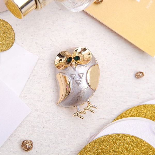 • Брошь "Сова" удивленная, цвет зеленый, цвет золотистый