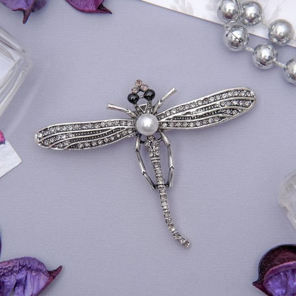 Брошь "Стрекоза" моно, цвет серый в черненом серебре