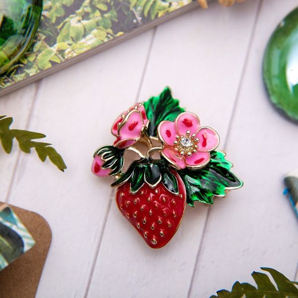 br90-01129, br90, br90-, 90-, 90-01129, брошь_"земляничка"_с_цветами, брошь