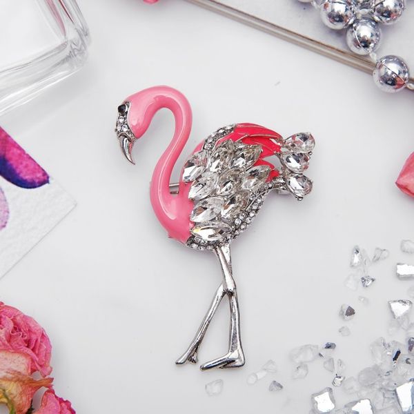 br90-01159, br90, br90-, 90-, 90-01159, брошь_"фламинго"_с_искристым, стразы, брошь, рис